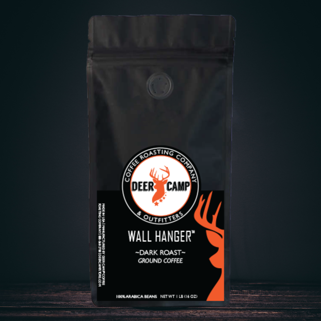 DEER CAMP® Coffee Wall Hanger™ is a propriety blend of coffee beans dark roasted to perfection.