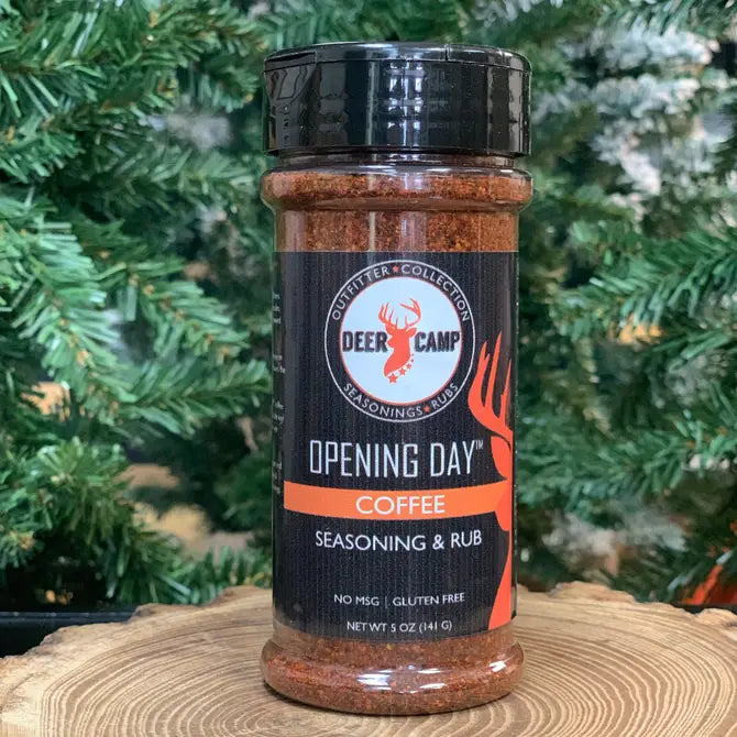 Featuring DEER CAMP® Coffee Opening Day™ coffee beans. The delicious rich coffee bean aroma is the key ingredient of this seasoning. Our coffee beans are roasted for consistency and taste.